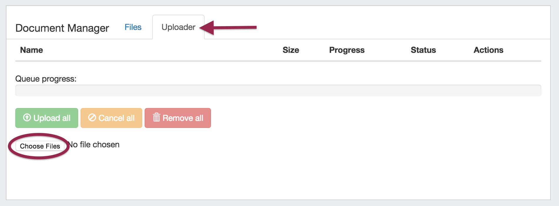 5.1.2 Empty Document Manager Uploader Tab Choose Files.png