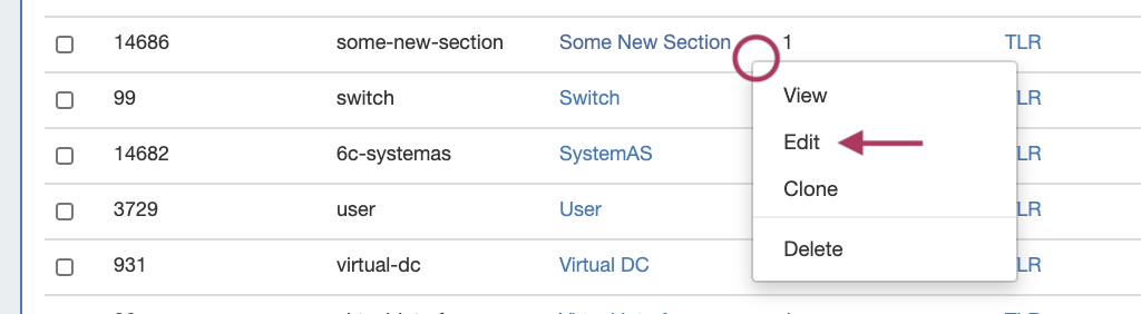 You can manage existing sections by opening the Action Menu for the section, then clicking "Edit".